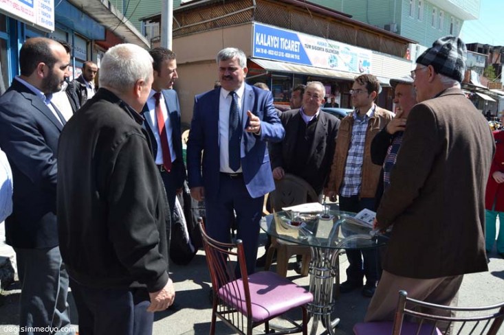 Pazaryerindeki tüm tezgâhları dolaşarak esnaf ve vatandaşlarla tek tek el sıkışan Çaturoğlu ve beraberindekiler, sıkıntıları dinleyip çözüm önerilerine yönelik bilgilendirmede bulundular.