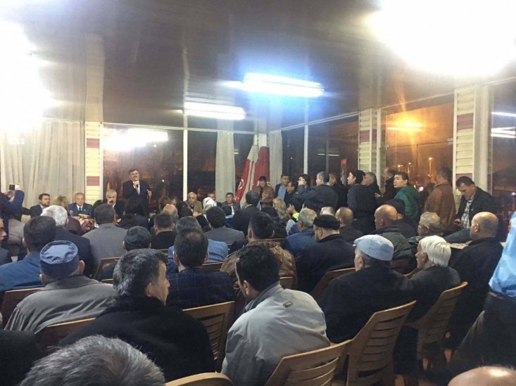 Değerli arkadaşlarımız 18 maddelik Anayasa değişikliği içeriğinin nelerden ibaret olduğu, niçin evet oyu verilmesi gerektiğini anlatmak için sizin huzurlarınızdayız. Bunun için gece gündüz demeden durmaksızın çalışıyoruz. Ama karşımızda bir de hayır cephesi var. Anayasa değişikliği maddelerini anlatmak yerine işin kolayına kaçıp yalan yanlış iftira dolu şeylerle Milletimizin Çaycumalıların, Perşembelilerin kafasını karıştırmaya çalışıyorlar. Hayır oylarını biraz daha artırmak için çalışıyorlar. Biz de onlara diyoruz ki gelin sizde evet oyu verin.