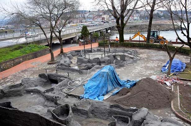 Alaplı Belediye Aile Çay Bahçesinde çevre düzenlemesi ve yapay şelaledeki yenileme çalışmaları devam ediyor.