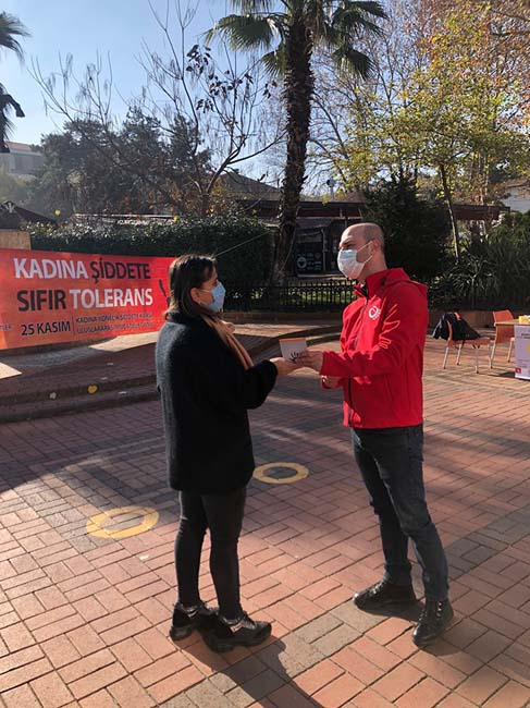 25 Kasım Kadına Yönelik Şiddetle Uluslararası Mücadele Gününde eş zamanlı olarak 81 ilde ve Çaycuma’da Kadına şiddete dikkat çekmek için Atatürk Anıtı’nın önünde stant kuruldu. Sokaktaki vatandaşlara kadına şiddete neden hayır denilmesi gerektiğini anlatıldı. Yoğun bir şekilde kadına yönelik şiddetin azaltılması ve kamuoyunun aydınlatılması için esnaflara da ziyaret edilerek bilgilendirildi.