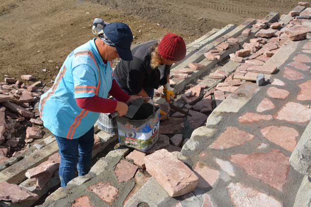 Çaycuma Belediyesinin İş-Kur'dan Toplum Yarına Proje (TYP) kapsamında işe aldığı kadınlar Filyos Nehri kenarında yapımı devam eden Filyos Park Yaşam Alanı birinci etabını bir an önce hizmete sunmak için büyük emek harcıyor.