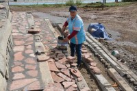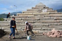 olarak düşünülen piramitlere taş döşüyor. Daha önce böyle bir işi hiç yapmamış.