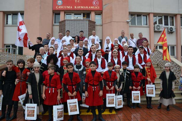 19-22 Temmuz tarihleri arasında yapılacak "Çaycuma Günleri" için gelen Makedonya ve Gürcistan halkoyunları gruplarının Belediye ve Kaymakamlık ziyaretleri son derece renkli görüntülere sahne oldu.
