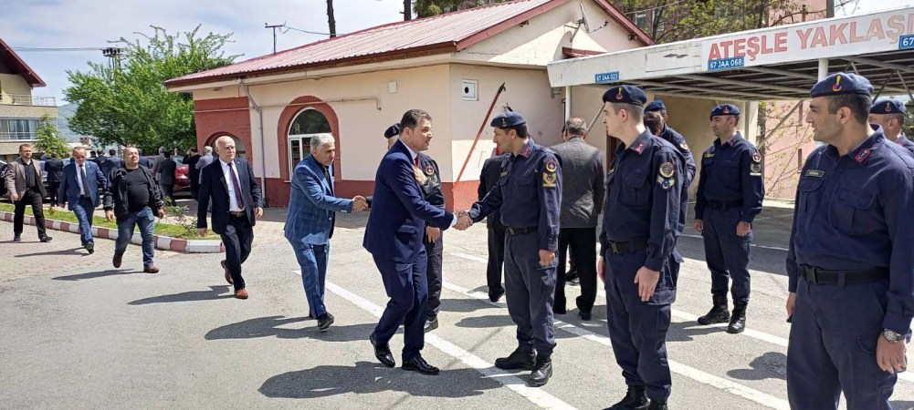İlçe Kaymakamı Muharrem Coşgun burada yaptığı konuşmada, iki yıldır pandemi nedeniyle bayramlaşma törenlerinin yapılamadığı, bir araya gelinemediğini, kaynaşmanın sağlanamadığını belirterek zorlu bir sürecin ardından yeniden birlikte bir araya gelmekten memnuniyet duyduğunu ifade ederek, protokolün bayramını kutladı. Buradaki programın ardından protokol daha sonra sırasıyla İlçe Jandarma, Emniyet Müdürlüğü, huzurevi ziyareti ile devam ederken son ziyaret şehit aileleri ziyaret edildi.