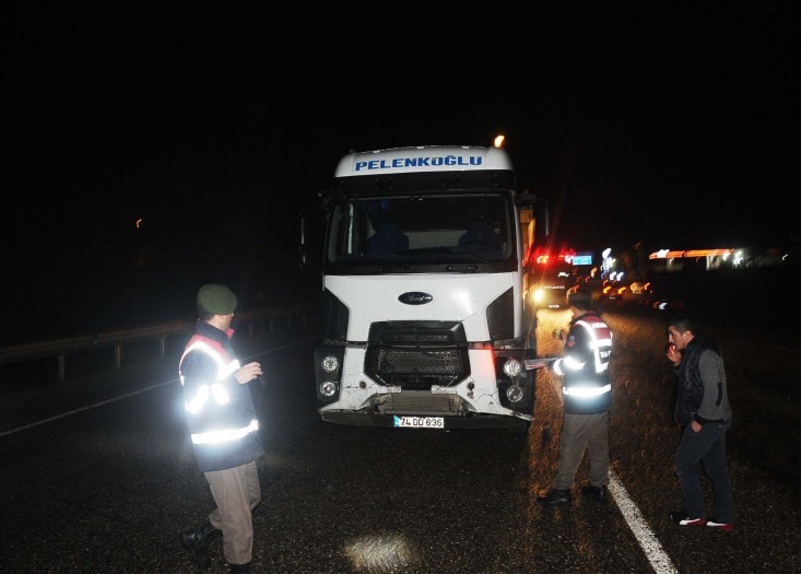idaresindeki 74 DD 636 plakalı TIR'ın çarpmasıyla yol kenarına uçtu. Olay hemen