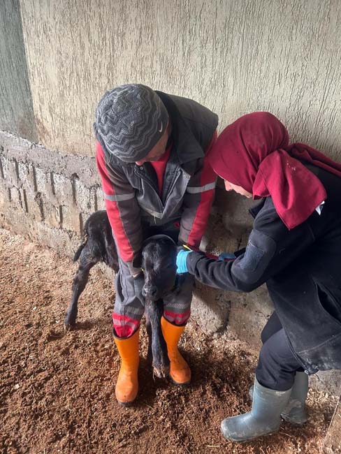Çaycuma İlçe Tarım ve Orman Müdürlüğü bünyesinde görev yapan veteriner hekimler, proje kapsamındaki hayvancılık işletmelerini ziyaret ederek denetim gerçekleştirdi. Ziyaretlerde, üreticilere kazandırılan hayvanların genel sağlık durumları kontrol edilirken, sürüye yeni katılan Angus buzağıların küpeleme ve kimliklendirme işlemleri tamamlanarak sistem kayıtları yapıldı.