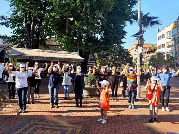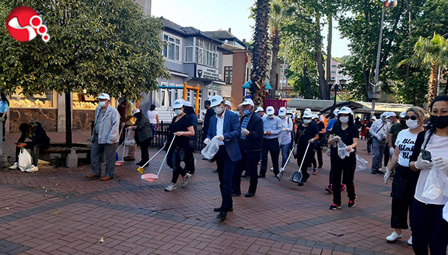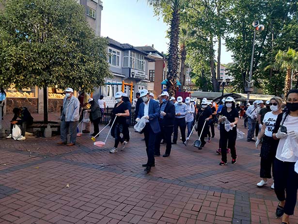 Toplanan büyüklü küçüklü grup harmandalı gösterisinin ardından Cumhuriyet Meydanı'ndan Seka Sosyal Tesislere kadar yoldaki çöpleri topladı.