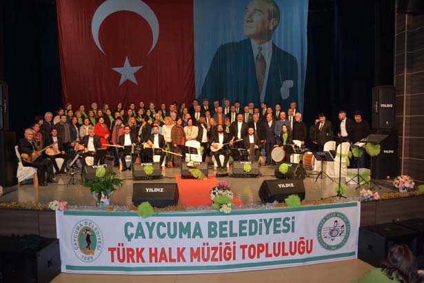 Çaycuma Belediyesi Türk Halk Müziği Topluluğu'nun, Çaycuma Kültür ve Sanat Merkezi'nde verdiği konser büyük ilgi gördü. TRT Ankara radyosundan emekli şef Ertuğrul Karabulut yönetimindeki konseri, Çaycuma Kaymakamı Serkan Keçeli, Belediye Başkanı Bülent Kantarcı, Belediye Başkan Yardımcısı Körpüş Mısırlı, Belediyesi Meclis üyeleri Cengiz Gökçe ve Bahri Malakçı, Perşembe Belediye Başkanı İsmail İnam, Esnaf ve Sanatkârları Odası Başkanı Hayri Kandemir, İlçe Milli Eğitim Müdürü İsmail Baş, Mal Müdürü Şener Civak, CHP İlçe Başkanı Şeref Köktürk ve yönetim kurulu üyeleri, İyi Parti İlçe Başkanı Ahmet Köktürk, ADD Çaycuma Şube Başkanı Zeki Saim Oral, Kent Konseyi Başkanı Berna Çimsalan Özyurt'un yanı sıra Devrek, Alaplı, Ereğli Türk Halk Müziği Topluluğu yöneticileri ile kalabalık bir vatandaş topluluğu izledi.