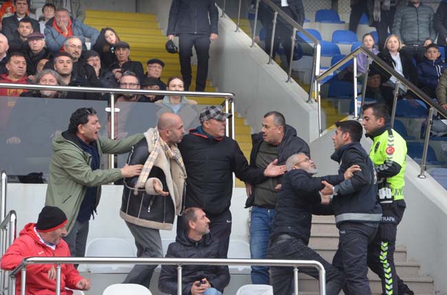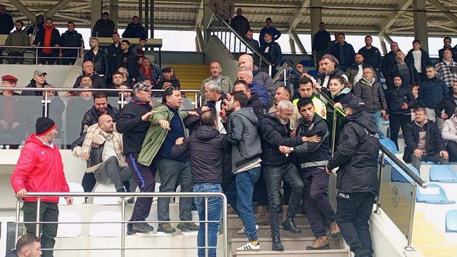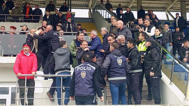 Karşılaşmanın son dakikalarına girilmesiyle birlikte sahada yaşanan bir pozisyonda sinirlenen ve sakinleştirilemeyen Devrek Belediyespor'dan bir taraftar sahaya su şişesi fırlattı. Su şisesi fırlatan taraftarı sakinleştirmek için tribüne giden bir polis memuru taraftarın şiddeti ile karşı karşıya kaldı. O esnada tribünlerde bir gerginlik oluştu. Diğer polis memurlarının araya girmesiyle birlikte sakinleştirilemeyen taraftar bulunduğu yerden alınarak başka bir konuma getirildi.