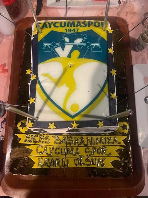 Çaycumaspor Kulübünün yeni yönetimi, Başkan Enes Eser’ e bir sürpriz yaparak Çaycumaspor’un renklerinden oluşan yaş pasta hazırlattı. Kulüp başkanı ve yönetimi pastayı birlikte kesti. Kutlamada neşeli anlar yaşandı.