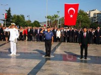 Belediye Başkanı Hüseyin Uysal, Atatürk Anıtı'na çelenk sundular. Erdemir Genel