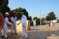 Çelenk sunumu saygı duruşu ve İstiklal Marşı'nın okunmasıyla