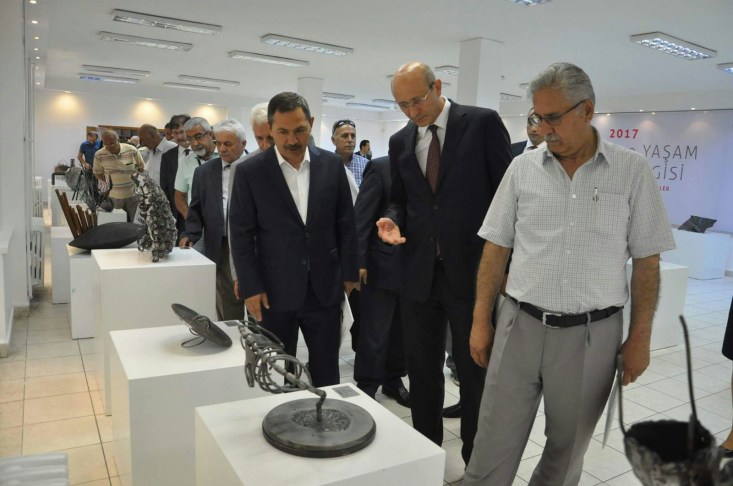 Serginin açılışının ardından Kaymakam Madenoğlu, Belediye Başkanı Uysal ve Dekan Azar, eserleri tek tek incelediler ve ERDEMİR Genel Müdürü Orhan'dan bilgi aldılar. Açılış törenine katılanlara hitaben bir konuşma yapan ERDEMİR Genel Müdürü Sedat Orhan, Çelik ve Yaşam Heykel Yarışması'nın ERDEMİR tarafından ilk kez 2005 yılında düzenlendiğini, daha sonra da 2013 ve 2015 yıllarında devam eden yarışmaların büyük ilgi gördüğünü belirtti.Orhan şöyle dedi: "Bunu geleneksel bir hale kavuşturmak istedik. Çünkü ERDEMİR işçisinin, çalışanının emeğiyle hayat bulan, yaşamda yer almasını sağlayan çeliğin, sanatla buluşmasını da gerçekleştirmek istedik. Bu aynı zamanda ERDEMİR çalışanının mühendisliğiyle çeliğe nasıl mukavemet, şekil kazandırdığının bir göstergesi de sanatla karşılaştırarak, böyle bir serginin anlamlı olacağını düşünerek başlattık. Üniversitelerimizin heykel bölümlerinde okuyan, lisans ve lisansüstü eğitim gören, geleceğin sanatkarları olacak olan öğrencilerin yarışmaya katılmaları sonucunda ki bu yıl 14 üniversiteden 122 öğrencimiz katıldı bu yarışmaya. Ödül alan ve sergilemeye değer bulunan eserlerin burada, bu sergiyle sizlerle buluşmasını sağladık. İnşallah çeliğe nasıl şekil verdiğimiz gibi, Türk insanının da sanatla buluşmasını bir nebze sağlamış oluruz." ERDEMİR Genel Müdürü Sedat Orhan, yarışmaya katılan öğrencilere ve sergi açılışında yer alan davetlilere de teşekkür etti. Orhan, Ereğli'de sergilenen bu eserlerin daha sonra da ERDEMİR Grubu'nun şirketlerinin bulunduğu Sivas ve İskenderun ile Ankara'da da sergileneceğini kaydetti.