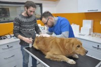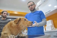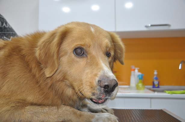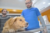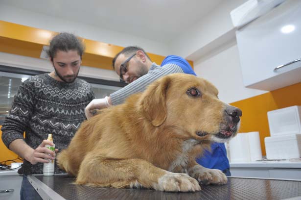 'Golden' cinsi sokak köpeğin tedavisine Veteriner hekim Gökmen Koç, tarafından