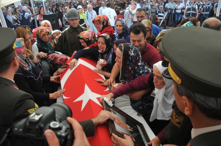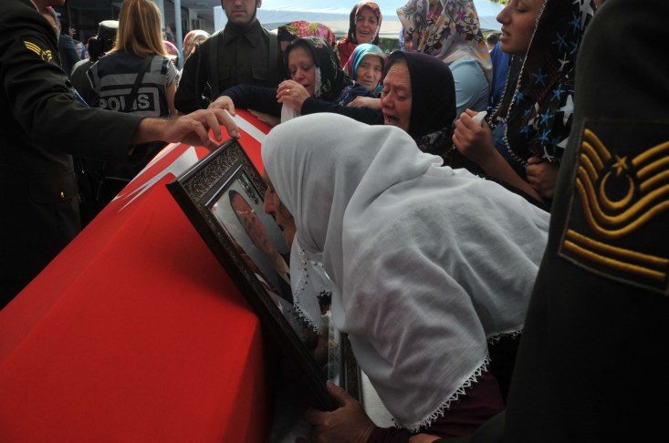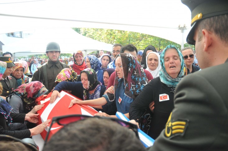 Cenaze töreninde şehidin yakınları ayakta durmakta zorlandı.