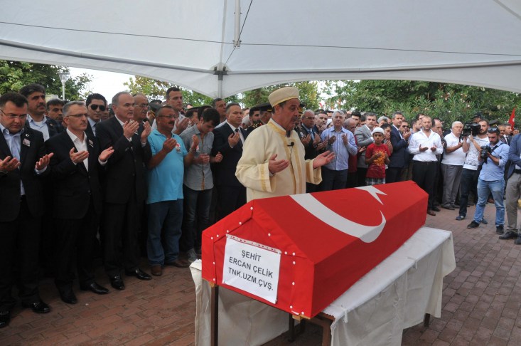 Fırat Kalkanı Operasyonu sırasında YPG'li teröristlerin hedefi olan tankın içerisinde şehit olan Tankçı Uzman Çavuş Ercan Çelik, son yolculuğuna uğurlandı.