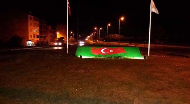 Türküm diyene " yazısı ve beldenin ana girişindeki göbeğe ışıklı Ayyıldız