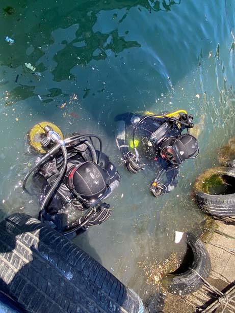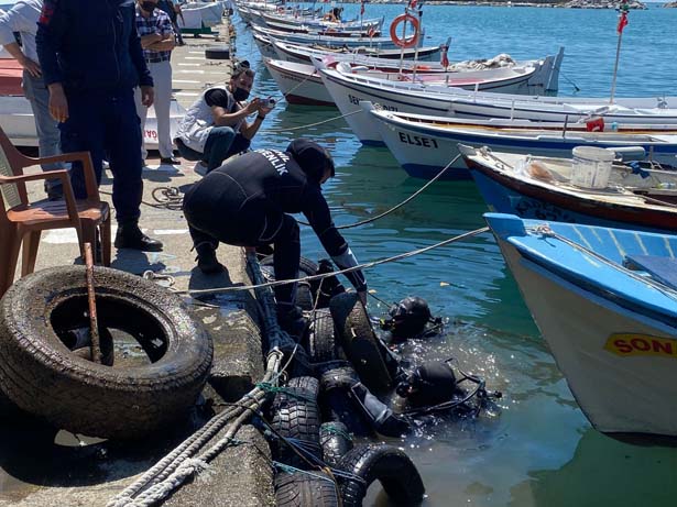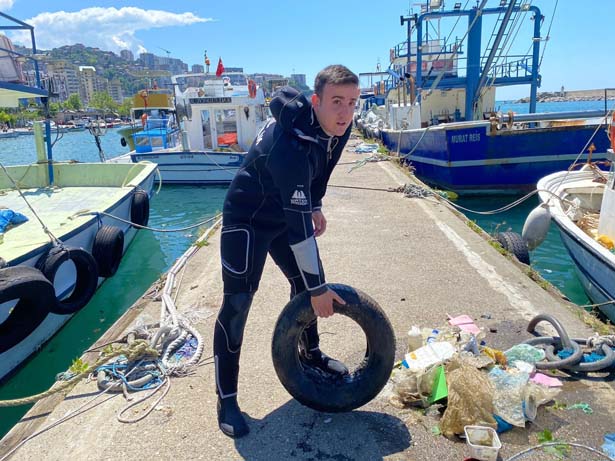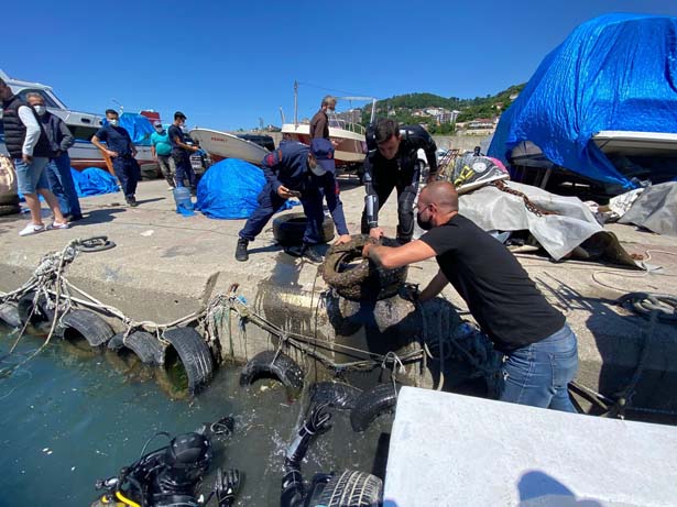 Dalgıçlar, hazırlıklarını tamamlamasının ardından limanın derinliklerine dalış yaparak atıkları karaya çıkardı. Dakikalarca denizin dizin atık arayan dalgıçlar uzun uğraşlar sonucunda onlarca otomobil lastiklerini denizin dibinden çıkardı. Lastikleri gören vatandaşlarda büyük şaşkınlık yaşadı.