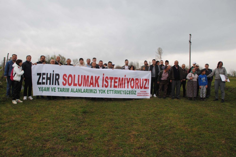 'Zehir solumak i stemiyoruz', 'Tarım alanlarınızdan ellerinizi çekin” ve 'Temiz çevre, temiz hava istiyoruz' pankartları açan çevreci gönüllüler, Perşembe beldesi Keçecioğlu Mahallesi halkının yanında olduklarını ifade ettiler.