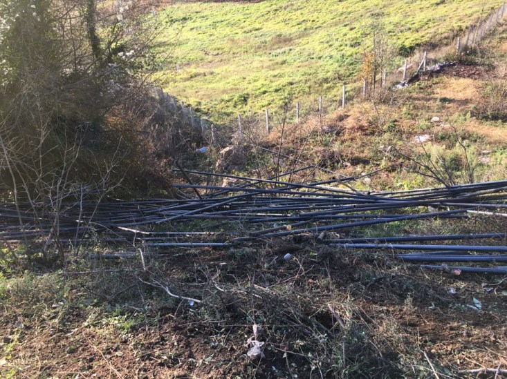 Zonguldak'ın Ereğli ilçesinde TIR üzerinde çevreye dağılan malzemeler vinç yardımı ile toplandı.