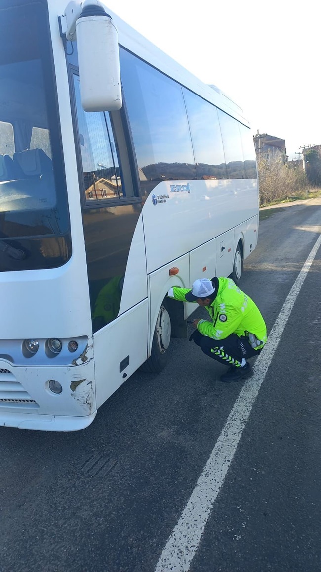 1-2-3 Aralık 2023 tarihlerinde denetim gerçekleştirildi. Zonguldak İl Emniyet Müdürlüğü’ne bağlı trafik ekiplerince, birimlerin sorumluluk güzergahlarında 24 saat esasına göre ‘Eş Zamanlı Denetim’ şeklinde, yük ve yolcu taşımacılığı yapan araçlar üzerinde yapılan Kış Lastiği Denetimi uygulamaları sonucunda; bin 689 araç ve sürücüsü denetlendi. 2918 sayılı Karayolları Trafik Kanunu’nun; 27 araca muayene süresini geçirmek, 4 sürücüye alkollü araç kullanmak, 1 sürücüye alkol reddi, 3 sürücüye fazla yolcu taşımak, 4 sürücüye takograf kullanmamak, 3 sürücüye ehliyetine yetkili merciler tarafından el konulduğu halde araç kullanmak, 2 sürücüye taşıt kullanım süresine riayet etmemek, 1 sürücüye yükün karayoluna düşecek şekilde yüklemek, 2 sürücüye sigortasız araç kullanmak, 1 sürücüye yapılan teknik değişikliği 30 gün içinde ruhsata işletmemek, 2 sürücüye geçerlilik sürücü dolan sürücü belgesi ile araç kullanmak, 4 sürücüye fazladan yolcu almak, 3 sürücüye kış lastiği takmamak, 15 araca yetki belgesiz taşımacılık yapmak, 3 araca psikoteknik belgesi olmayan sürücü çalıştırmak, 10 araca mesleki yeterlilik belgesi olmayan sürücü çalıştırmak maddelerinden olmak üzere 84 araç ve sürücüsüne toplam da 255 bin 83 TL trafik idari para cezası uygulandı.
