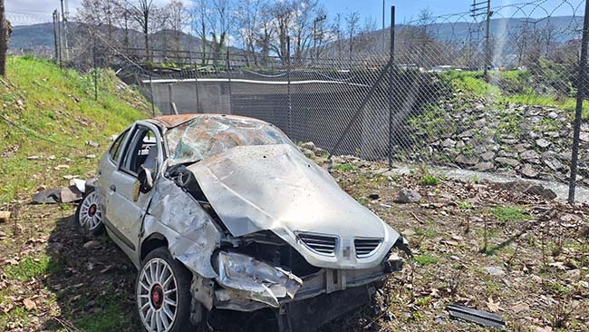 Zonguldak -Ankara karayolunda kontrolden çıkan otomobil cezaevi bahçesine uçtu.