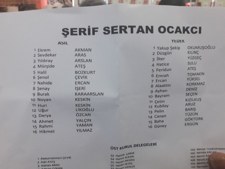 Ocakçı'nın listesinde yer alan isimler ise şu şekilde: Ekrem Akman, Sevdekar Aras, Yıldıray Arslan, Mürşide Ateş, Halil Bozkurt, Şenol Çevik, Nahide Ercan, Şenay İşeri, Burak Karaarslan, Noyan Keskin, Huri Keskin, Uğur Likoğlu, Derya Özcan, Ahmet Yalçın, Rahmi Yaman, Hikmet Yılmaz.