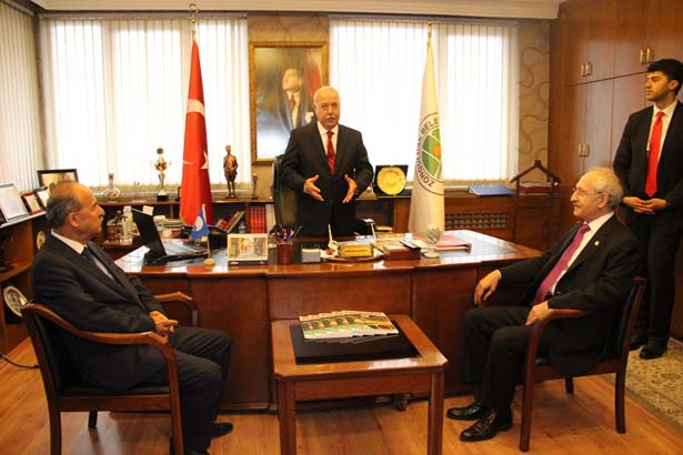 Cumhuriyet Halk Partisi (CHP) Genel Başkanı Kemal Kılıçdaroğlu, bir dizi ziyaret temel atma töreni, toplu açılış ve STK'larla toplantıda bulunmak üzere geldiği Zonguldak'ta, Belediye Başkanı Muharrem Akdemir'i makamında ziyaret etti.