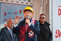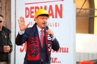 madenci bareti ve Zonguldak Kömürspor atkısıyla çıktığı mitingde partisinin