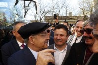 bir çay bahçesinde çay molası verdi. Vatandaşlarla sık sık hatıra fotoğrafı
