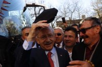 alırız." dedi. Bir belde sakini başındaki şapkayı Kılıçdaroğlu'na verdi. Bir
