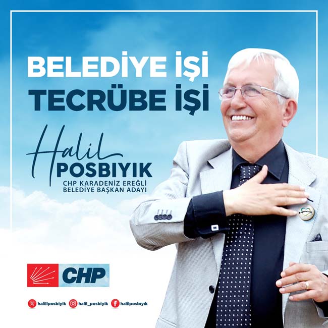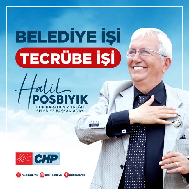 CHP'den Karadeniz Ereğli Belediye Başkanlığına mevcut Belediye Başkanı Halil Posbıyık'ın yanı sıra Muhittin Dikmen, Şerif Sertan Ocakcı, Emrah Karaarslan, Harun Kaçmaz ve Buket Müftüoğlu aday adayı olmuştu.chp Genel Merkezi Karadeniz Ereğli Belediye Başkan Adayını Halil Posbıyık olarak açıkladı.