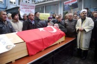 Akgün'ün içinde bulunduğu tabutu omuzlarında taşıyan vatandaşlar ve arkalarında