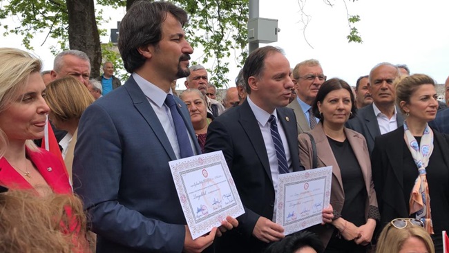 Milletvekili Yavuzyılmaz ve Ertuğrul, mazbatalarını İl Seçim Kurulu Hakimesi Müjgan Demiröz'ün elinden aldılar.