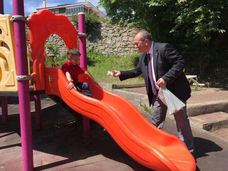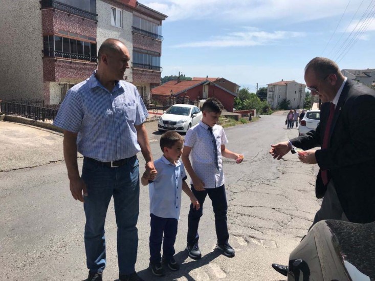 Cumhuriyet Halk Partisi Karadeniz İlçe Başkanı Ş. Sertan Ocakcı ve beraberindeki partili üyelerle beraber ailelerin bayramını kutlayıp, çocuklar için hazırladıkları şekerleri mahallenin çocuklarına dağıttılar.