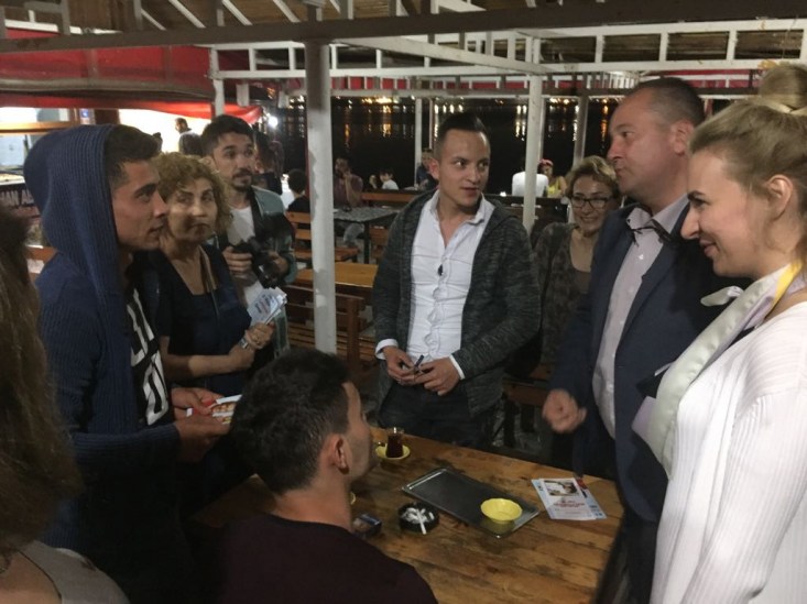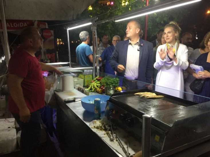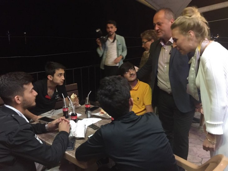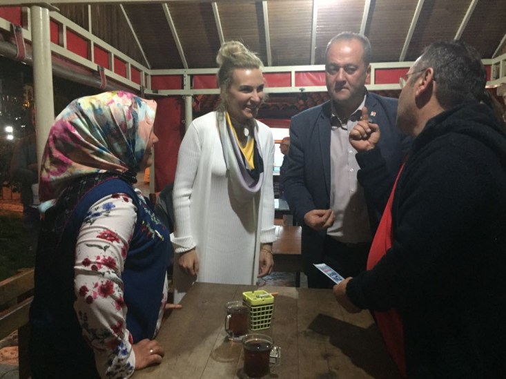 Sahil bandındaki kafe ve iftarlarını açan vatandaşlarımızla hem sohbet hem de dertleştiler. İlçe Başkanımız Ş.Sertan Ocakcı, Zonguldak 4. Sıra Milletvekili adayımız Merve Kır ve beraberindeki parti çalışma ekibimiz sahil bandı üzerindeki işportacı esnafından alışveriş yaparak destek verdiler. Cumhuriyet Halk Partisi Karadeniz Ereğli İlçe Başkanımız Sertan Ocakcı, Zonguldak 4. Sıra Milletvekili adayımız Sayın Merve Kır, partili yönetici ve üyelerimiz 24 Haziran seçimlerinde Cumhurbaşkanlığı için Sayın Muharrem İnce'ye Milletvekilliğinde ise Zonguldak Milletvekili adaylarımıza destek istediler. Saat: 02.00'ye kadar sahil bandında çalışan ekibimiz son olarak gençlerle bir arada oturarak sohbet ettiler"