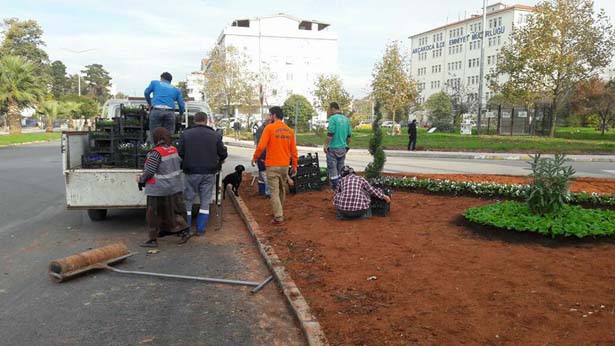 Akçakoca Belediyesi Park Bahçeler Birimi caddeler, kavşaklar ve orta refüjlerde çiçek ekimi ve peyzaj çalışmalarına devam ediyor.