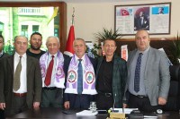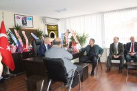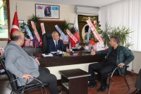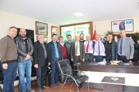 Karadeniz Ereğli Belediyespor 2.Başkanı Halil Bozkuş ziyarette Karadeniz Ereğli şoförler ve Otomobilciler Odası Başkanı Cevdet Civelek ve Başkan Yardımcısı Ahmet Küçük'e Karadeniz Ereğli Belediyespor atkısı hediye etti.