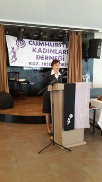 Mühendisler Derneği'nde gerçekleştirilen birlik beraberlik kahvaltısında günün anısına bir konuşma yapan CKD Ereğli Şube Başkanı Nur Erdoğan, Türkiye'nin en büyük kadın derneği olduklarını ve Mustafa Kemal'in devrimci kızları olduklarını vurguladı.