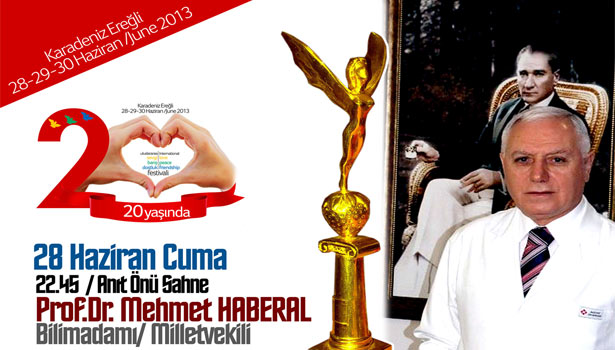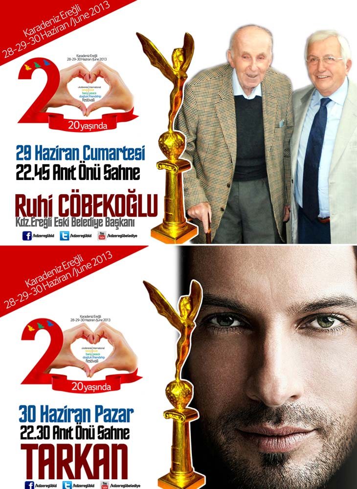 HABERİN İÇİNDEN: 28-29-30 Haziran 2013 tarihlerinde 20inci yaşını kutlayacak olan Uluslararası SEVGİ BARIŞ DOSTLUK?????? Festivali etkinlikleri kapsamında düzenlenecek Sevgi Barış Dostluk ödüllerinden bir tanesi Ereğli eski Belediye Başkanı Ruhi Cöbekoğluna verilecek.