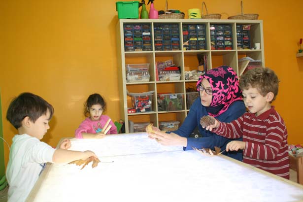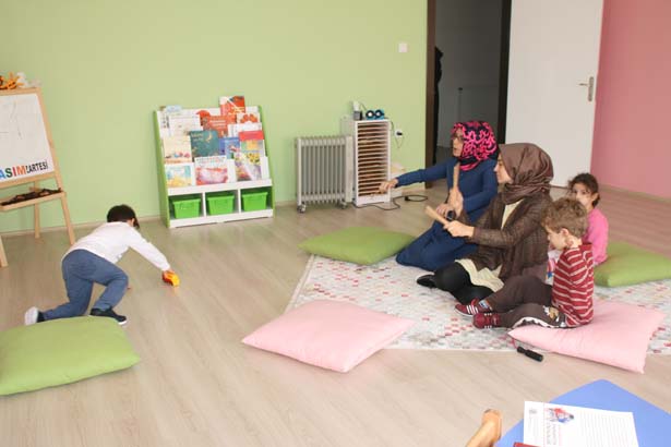 " Çocukların yaş gruplarına göre çeşitli etkinliklerimiz var. Atölyeler farklı değil ama yaş gruplarına göre çocuklara sunulan etkinlikler ve detayları farklı oluyor. Hafta sonu aslında planlamıyorduk ama çok talep oldu. Çocuk anneden ayrılabiliyor durumda olması lazım. Çünkü burada geçirdiği zaman iyi geçmeli. Çocuk burada mutlu olmalı. O yüzden küçük yaşta çocukların annelerini de misafir ediyoruz. Anneleri de küçük yaş gruplarına katabiliyoruz. 4-5 yaşında çocukların böyle bir ihtiyacı olmuyor. Cumartesi günleri saat birden sonra buradayız. Fakat yaş gruplarına önceden rezervasyon yaptırmak gerekiyor."