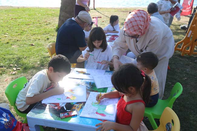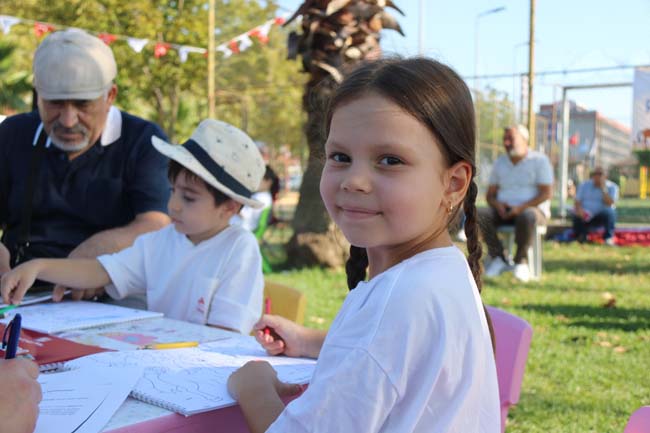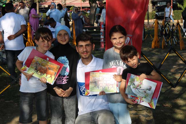 Atlarla yapılan turun ardından çocuklara puzzle, boyama defteri ve boya kalemleri hediye edilirken, alanda yer alan masalarda boyama yaparak keyifle vakit geçirdiler.