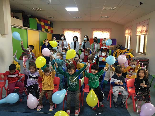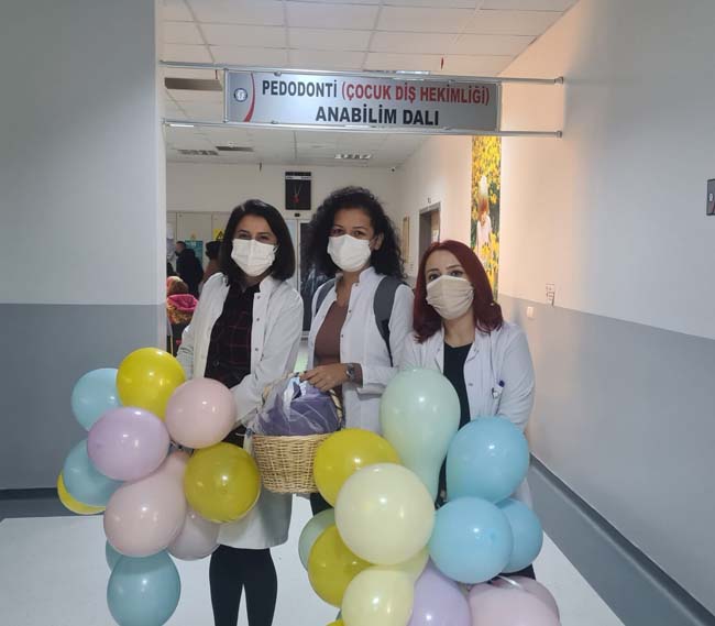 Diş Hekimliği Fakültesi Çocuk Diş Hekimliği Anabilim Dalı öğretim üyeleri Doç. Dr. Ebru Hazar Bodrumlu, Dr. Öğretim Üyesi Melek Belevcikli ve Araştırma görevlisi Dt. Melike Kurt, Toplum Ağız Diş Sağlığı Haftası kapsamında ZBEÜ Okul Öncesi Uygulama ve Araştırma Merkezinde, 3,4 ve 5 yaş gruplarındaki çocuklara ağız ve diş sağlığı eğitimi verdikten sonra, öğrencilere nasıl diş fırçalamaları gerektiğini göstererek, diş fırçası dağıttı.
