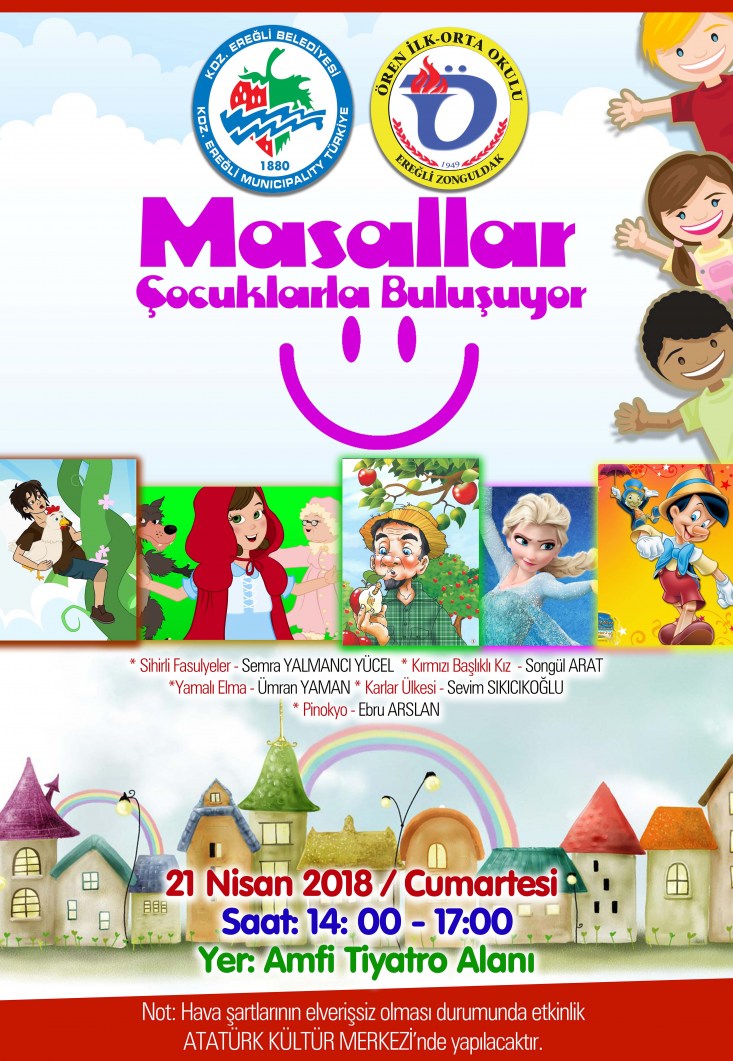 Karadeniz Ereğli Belediyesi Kültür ve Sosyal İşler Müdürlüğü ile Ören İlk-Orta Okulu'nun ortaklaşa düzenleneceği "Masallar Çocuklarla Buluşuyor" etkinliği için tüm hazırlıklar tamamlandı.