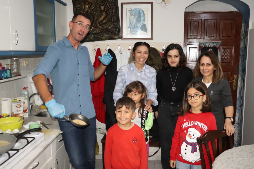 Yüzbaşı Bogdan Babiuc “Selam, Benim adım Bogdan Babiuc. 32 yaşındayım. Donanmada memurum. Görev için Türkiye'deyim. Boş zamanlarım için çizim kursuna katılmak istedim ve Vasfiye Bostan'ın bu güzel yerini buldum. O benim çizim öğretmenim. Aslında burda bir çok güzel çocukla da tanıştım ve onlar ile zaman geçirmek eğlenceli. Onlar için özel bir gün düzenlemek istedim ve pankekler hazırladım çünkü onları hazırlamak kolay. Her çocuk pankekleri sever. Bugün pankeklerle sanat icra ettik. Çocukların etrafta olduğu çok eğlenceli bir Türkiye günüydü. Teşekkür."
