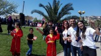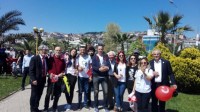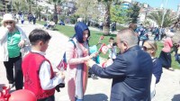 sahil bandındaki çocuklara gün boyunca balon, bayrak ve şeker dağıtarak, 23 Nisan Ulusal Egemenlik ve Çocuk Bayramlarını kutladılar.