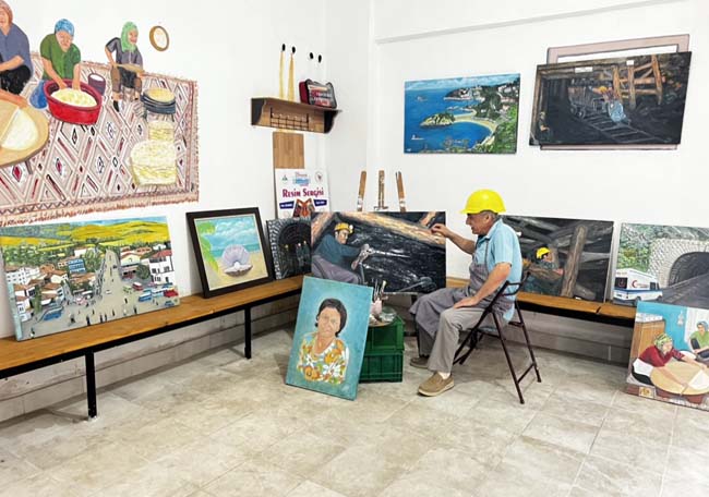 Zonguldak'ın Devrek ilçesinde yaşayan 68 yaşındaki Halit Kaya, 30 yıl önce madenden emekli olduktan sonra yağlı boya resim yapmaya merak sardı.