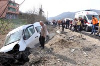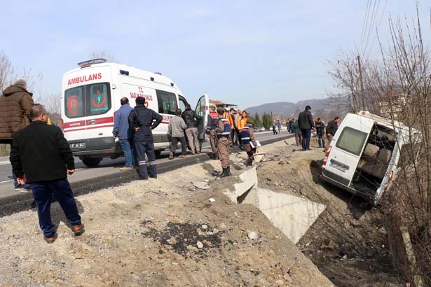 taramasından dönen vatandaşları taşıyan minibüs kaza yaptı. Kazada 9 kişi