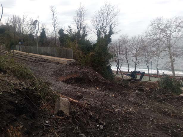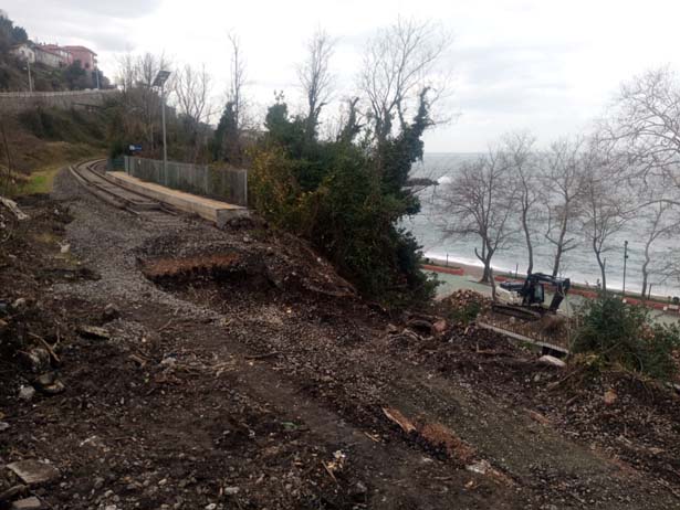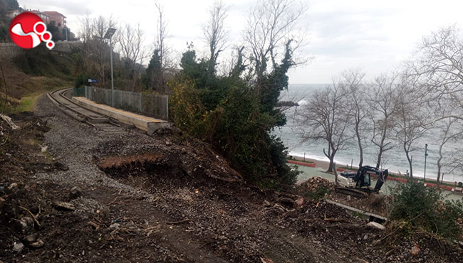 Zonguldak'ın Kapuz mevkiinde plajda yapılan çevrede düzenlemesi kapsamında çöken tren yolu için tamir etme çalışmaları başladı.