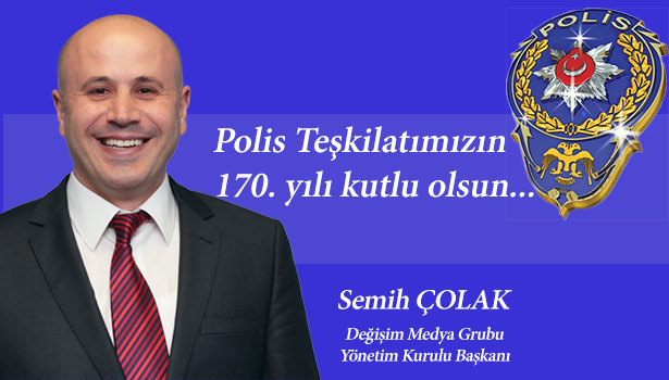 Değişim Medya Grubu Yönetim Kurulu Başkanı & İşadamı Semih Çolak,Türk Polis Teşkilatı'nın 170'inci kuruluş yıl dönümü sebebiyle bir mesaj yayımladı.